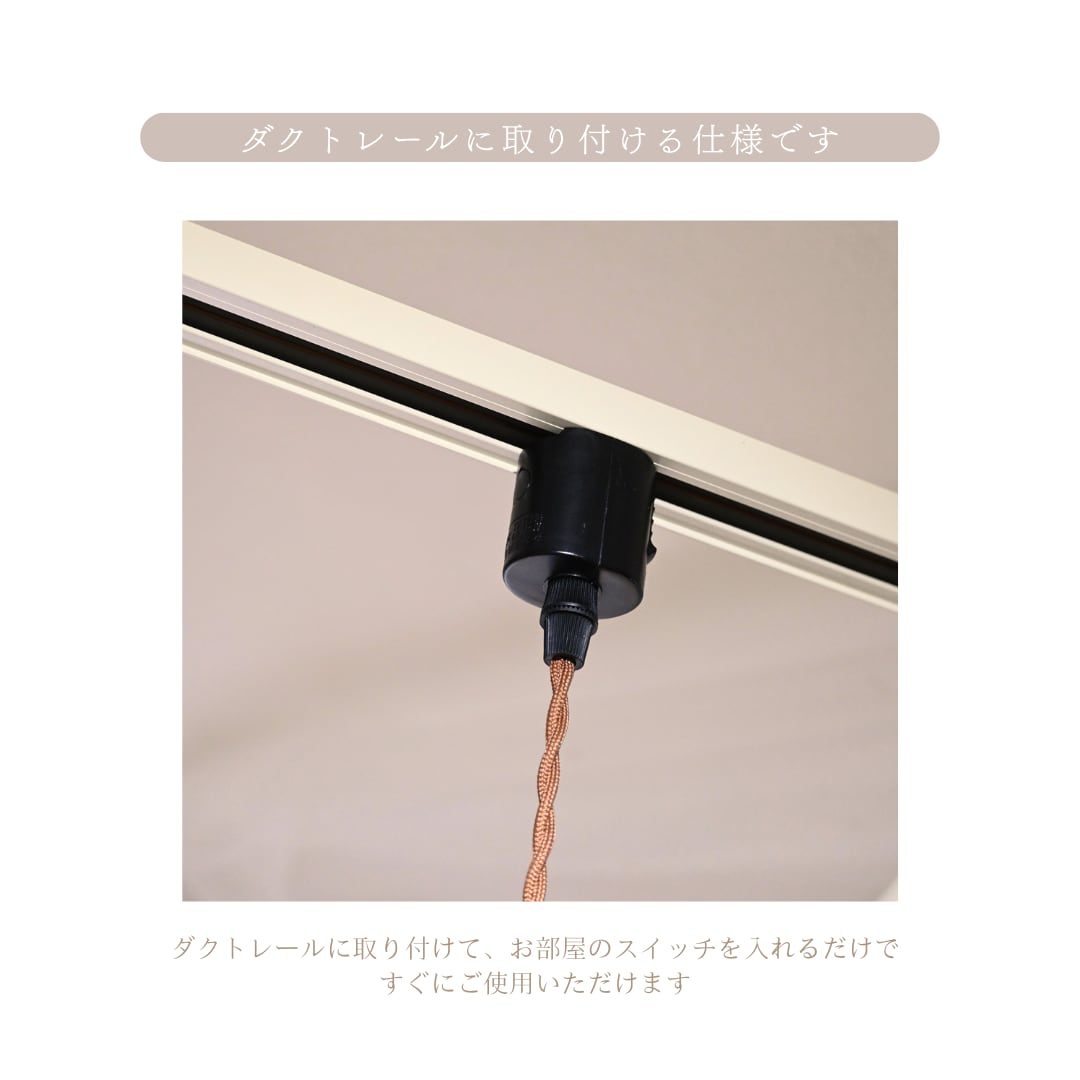 ライティングレール(ダクトレール)に吊るして設置していただく仕様となっております。